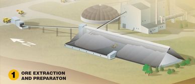 Kaolinized sand is extracted from the quarry and transported by truck to the crushing system. It is reduced in size and separated into piles of different grades. The ore is then moved through automated feeders to insure consistent Kaolin concentrations.