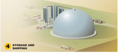 The reclaimed material is conveyed through a rotary dryer to separate the Kaolin from the sand. Both the sand and the dry Kaolin are stored in individual silos. Sand and Kaolin are then available for sales to customers or further processing.